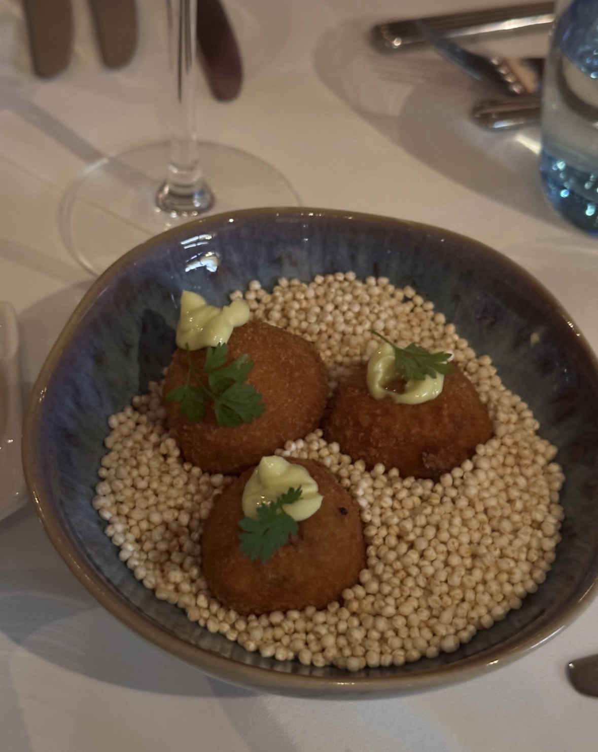 We werden verwend met een heerlijk viergangendiner, prachtig gepresenteerd en met veel zorg bereid door de studenten. Het was ook mooi om te zien met hoeveel enthousiasme de studenten in de keuken bezig waren. Er was zelfs een speciale amuse ontwikkeld: de Volley bierterbal!