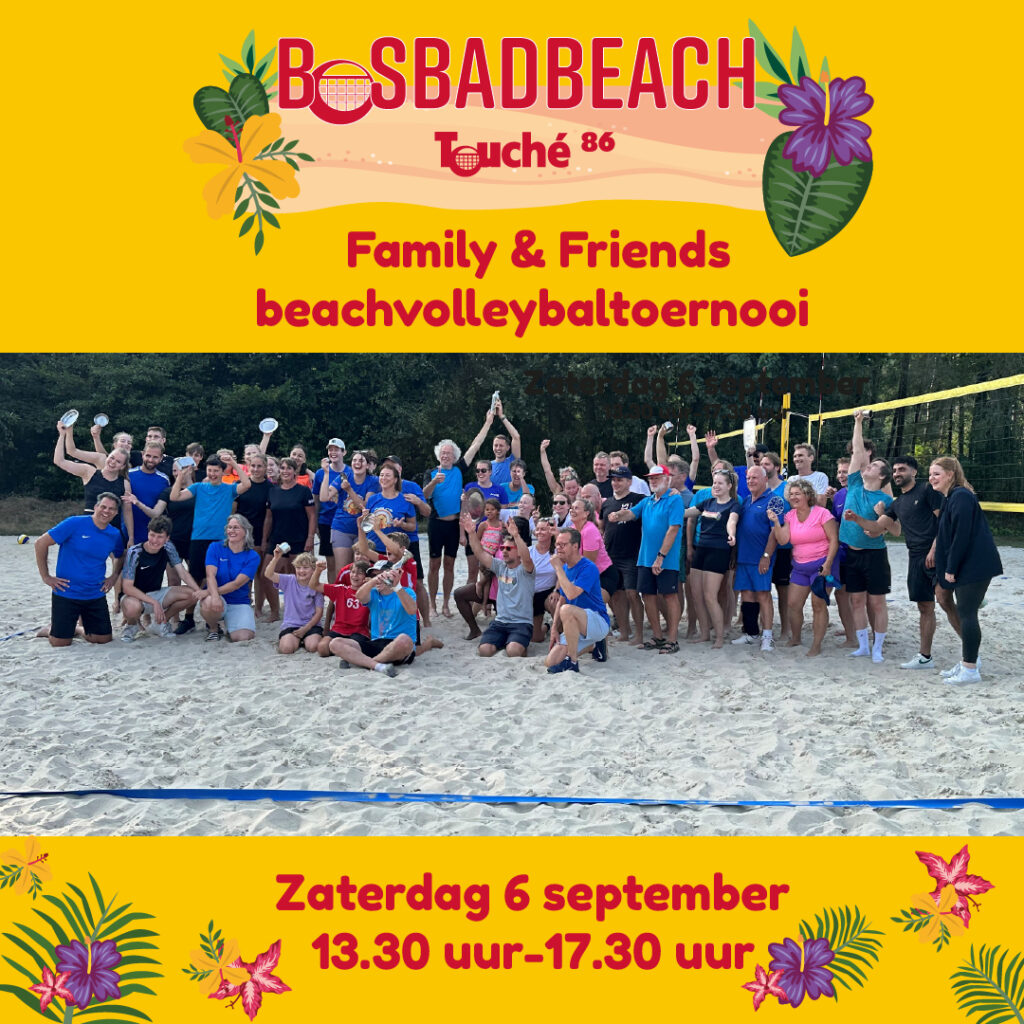 Vanaf nu kun je je team inschrijven voor het Family & Friends beachvolleybaltoernooi op zaterdag 6 september bij Bosbadbeach.