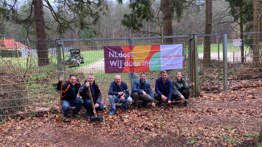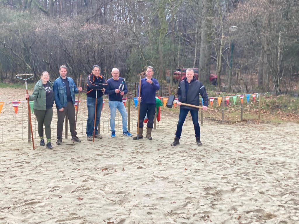 Vandaag zijn tijdens NLdoet onze beachvelden weer klaargemaakt voor het nieuwe seizoen. Het weer was wisselend – met af en toe een bui – maar dat mocht de pret niet drukken. Onder leiding van Arno is er hard gewerkt: de velden zijn opgebouwd, er is flink gesnoeid langs de bosrand en er is een nieuw hekje geplaatst zodat we straks weer veilig en met veel plezier kunnen beachvolleyballen.
