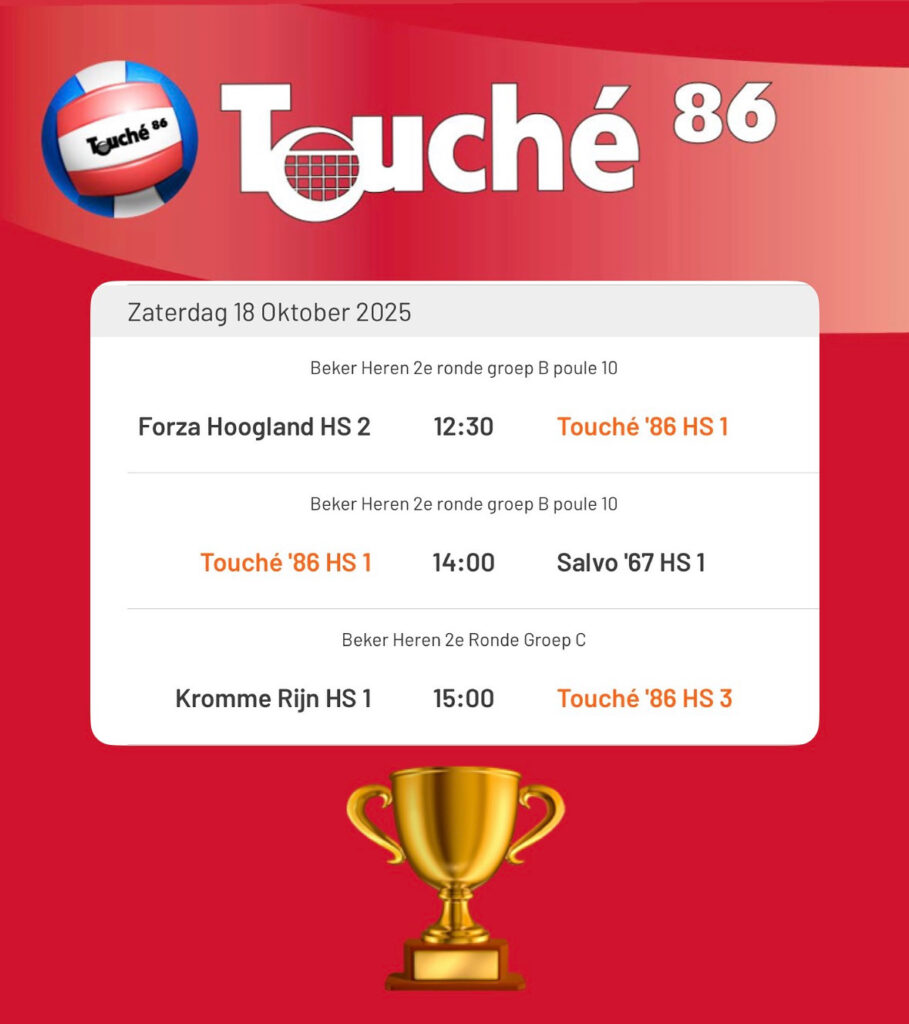 Aanstaande zaterdag spelen onze mannen van heren 1 en van heren 3 de tweede ronde van de beker.